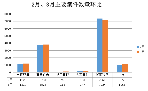 案件类别 | 3月(宗) | 2月(宗) | 增/减(宗) | 结案数(宗) | 结案率(%) | 案件主要类型 |