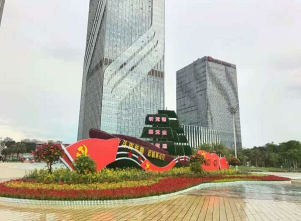 按照“热烈、节约”原则,在万达广场、东湖广场、江门枢纽站等城市重要公共空间设置庆祝中国共产党成立100周年主题花坛景观75组(其中15组配装光影设施),布置主题园艺景观200余处,种植和摆设长春花、百日草、红穗冠等鲜艳多彩的花卉绿植126.6万盆,形成万紫千红、华丽缤纷、欣欣向荣的景象。目前,花卉景观布置工作已全部完成。