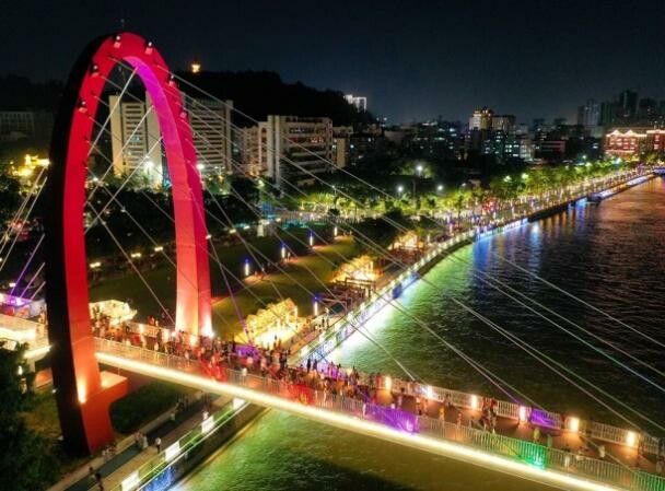 在万达广场灯光秀亮灯庆祝“100周年”,滚动刊播宣传标语(“热烈庆祝中国共产党成立100周年”“永远跟党走”“伟大的中国共产党万岁”),6月26日上演并组织江门日报、江门广播电视台、南方日报、触电新闻等媒体制作主题短视频进行二次有效刊播。在新会玉湖、蓬江园山湖播放“100周年”主题水幕电影、音乐喷泉。同时,充分利用江门枢纽站、公园、市政和办公场所的亮化设施、设备,在晚上7时至11时,实施夜间亮灯(其中江门枢纽站亮灯至零时)。