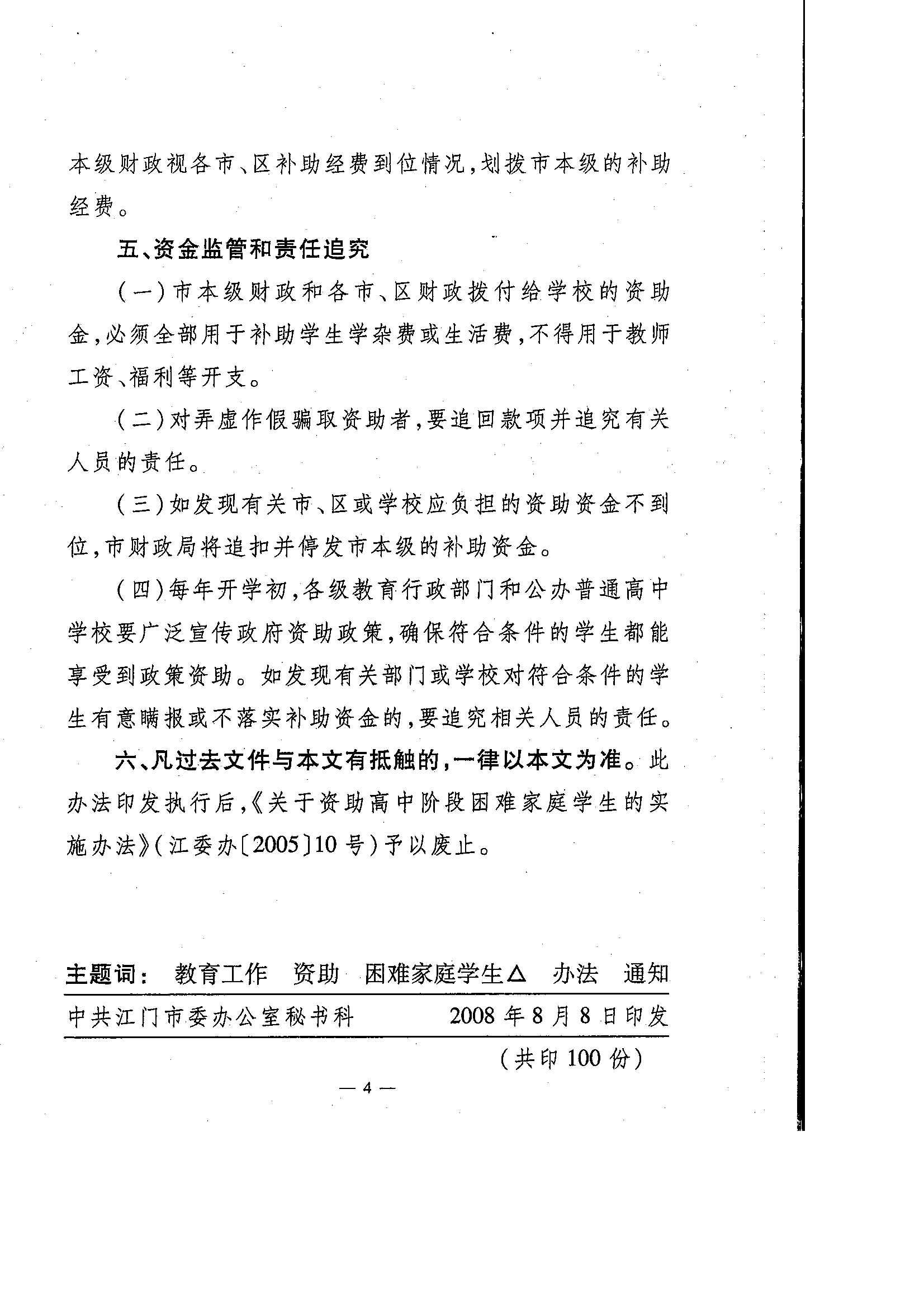 印发《关于资助普通高中困难家庭学生的实施办法》的通知