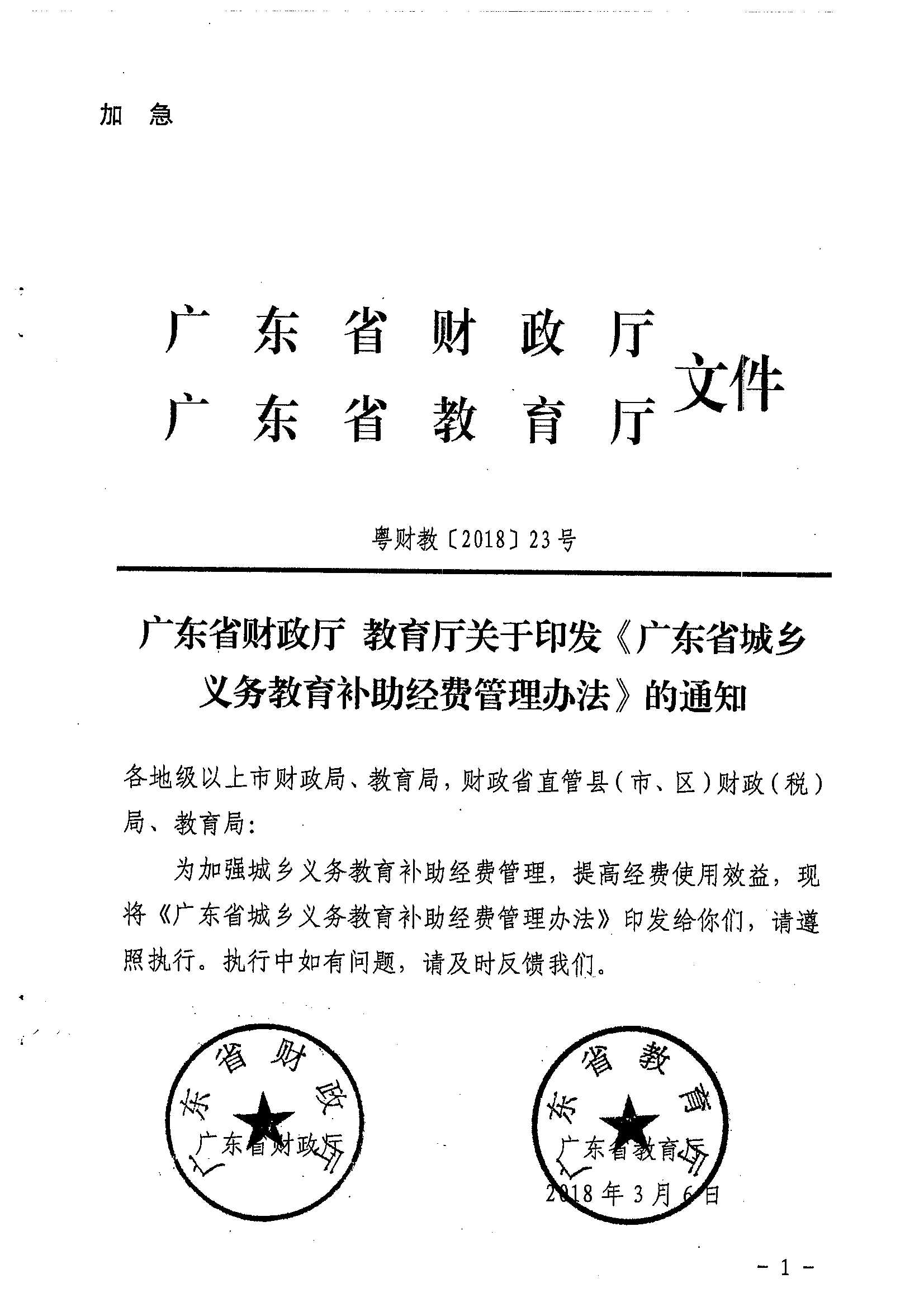 广东省财政厅 教育厅关于印发《广东省城乡义务教育补助经费管理办法》的通知