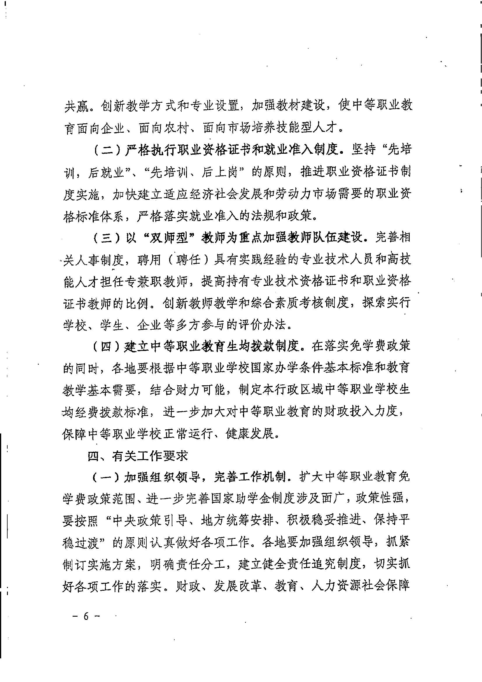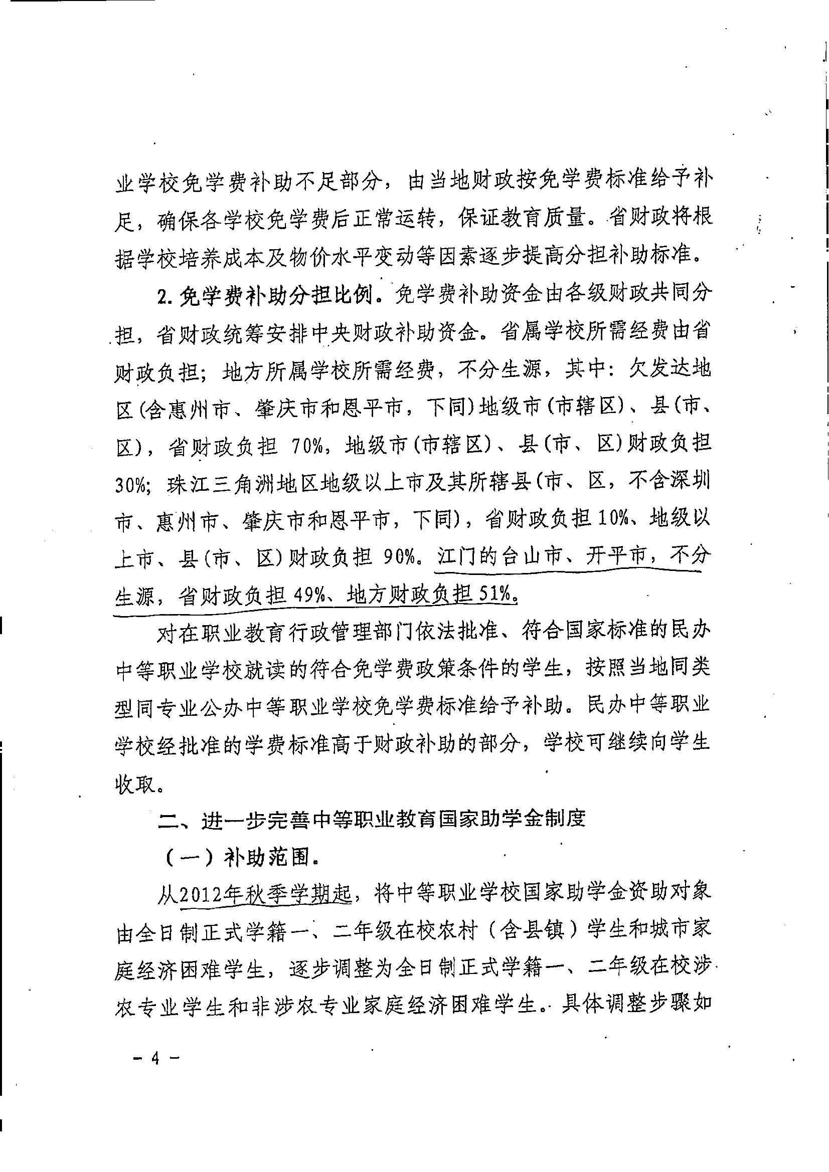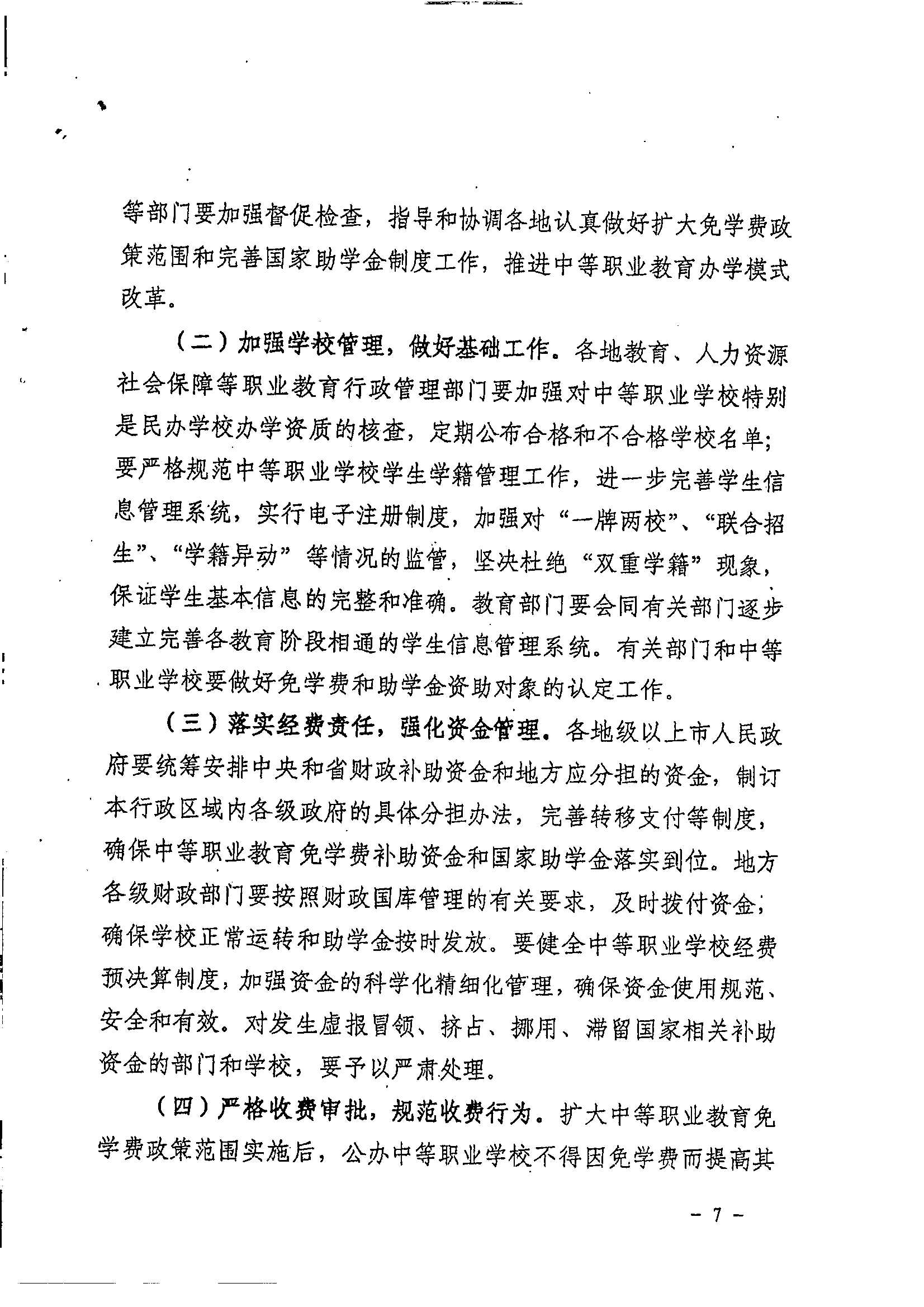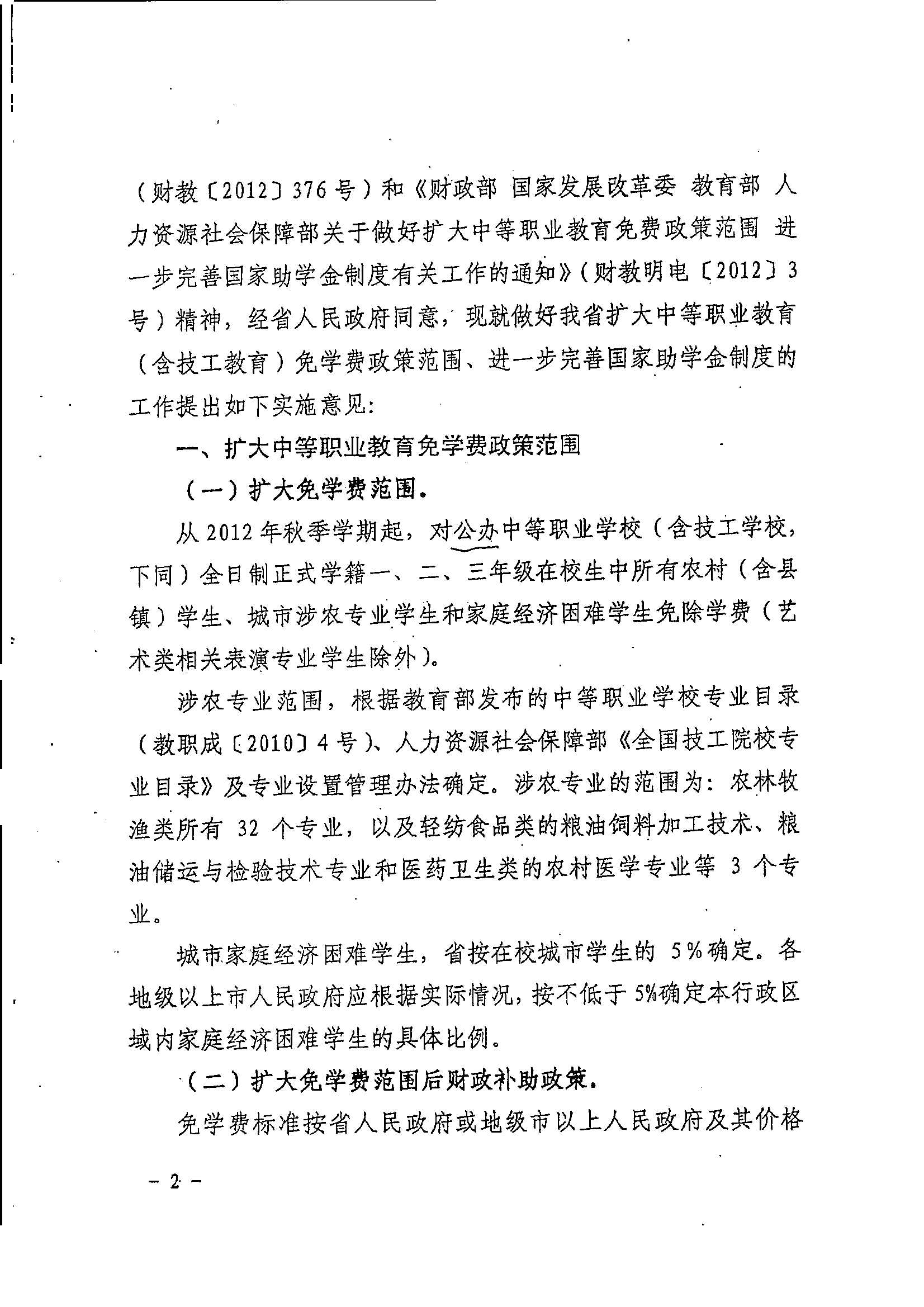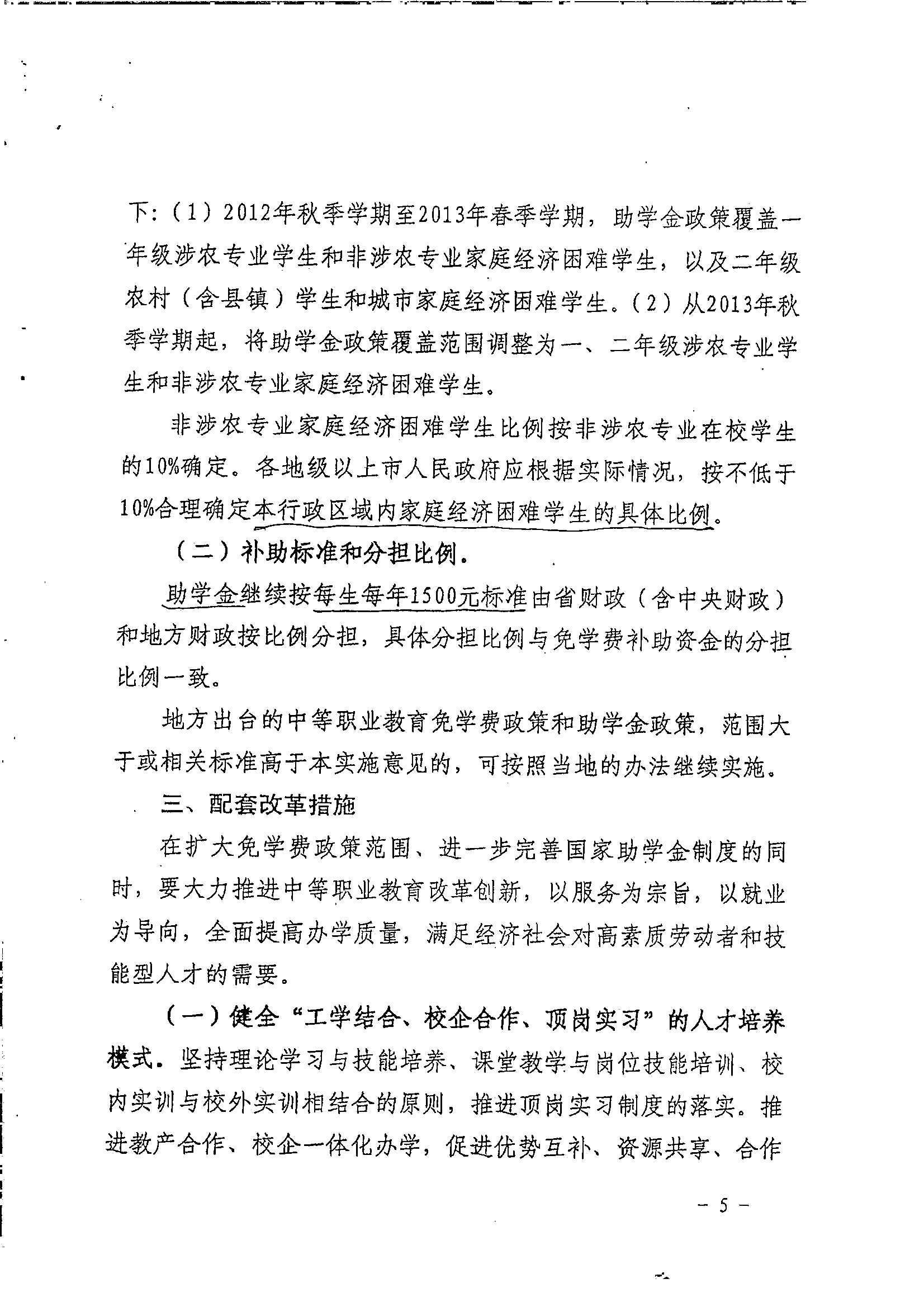 关于扩大中等职业教育免学费范围进一步完善国家助学金制度的实施意见