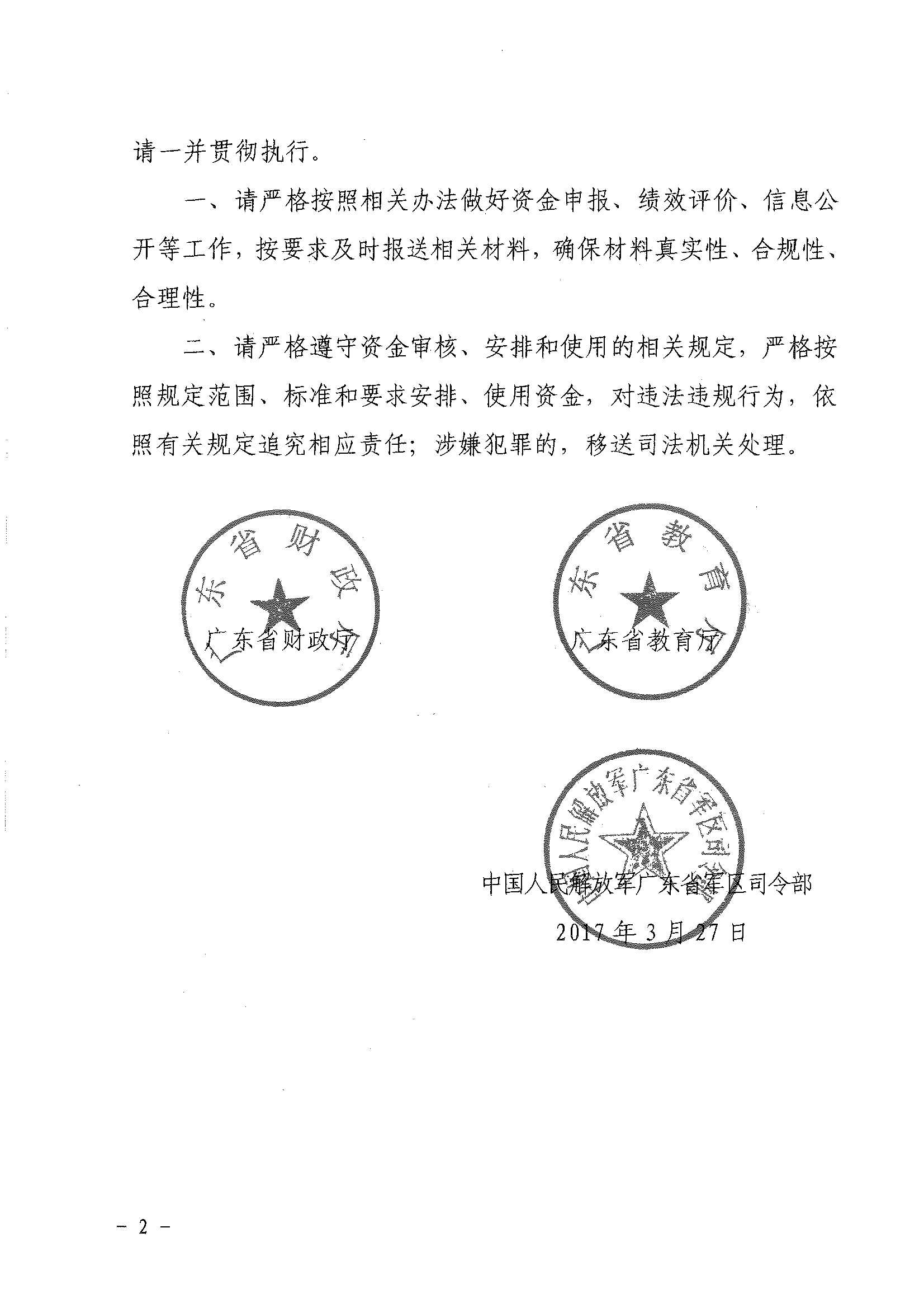 来源:广东省财政厅、教育厅、中国人民解放军广东省军分区司令部