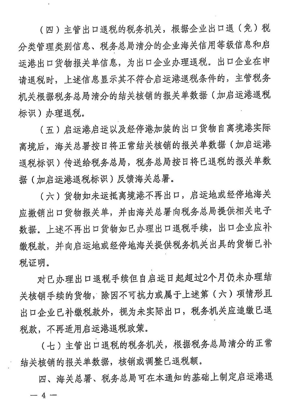 财政部 海关总署 税务总局关于完善启运港退税政策的通知