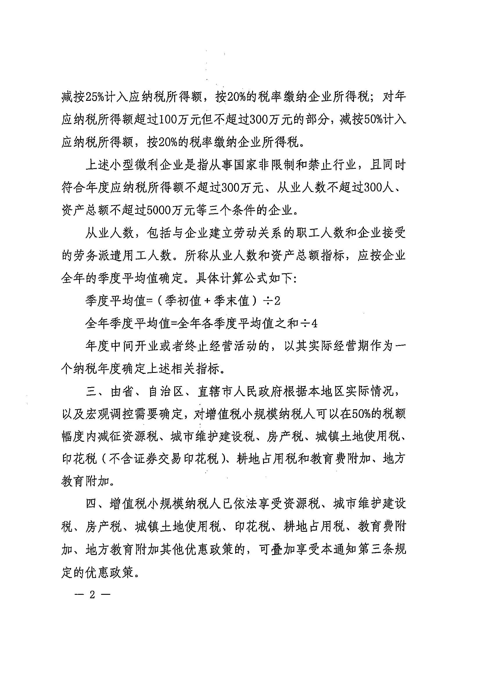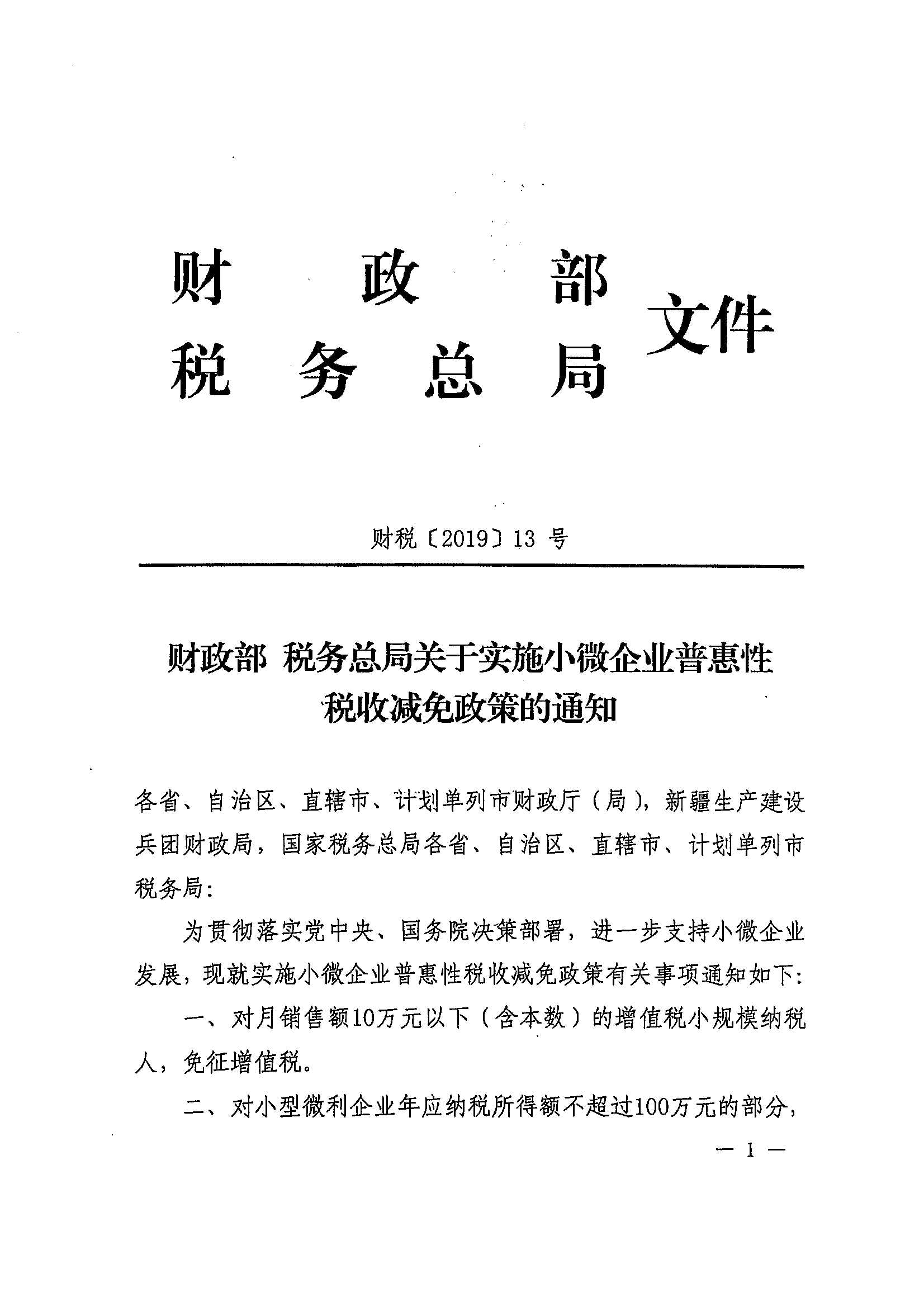 财政部 税务总局关于实施小微企业普惠性税收减免政策的通知
