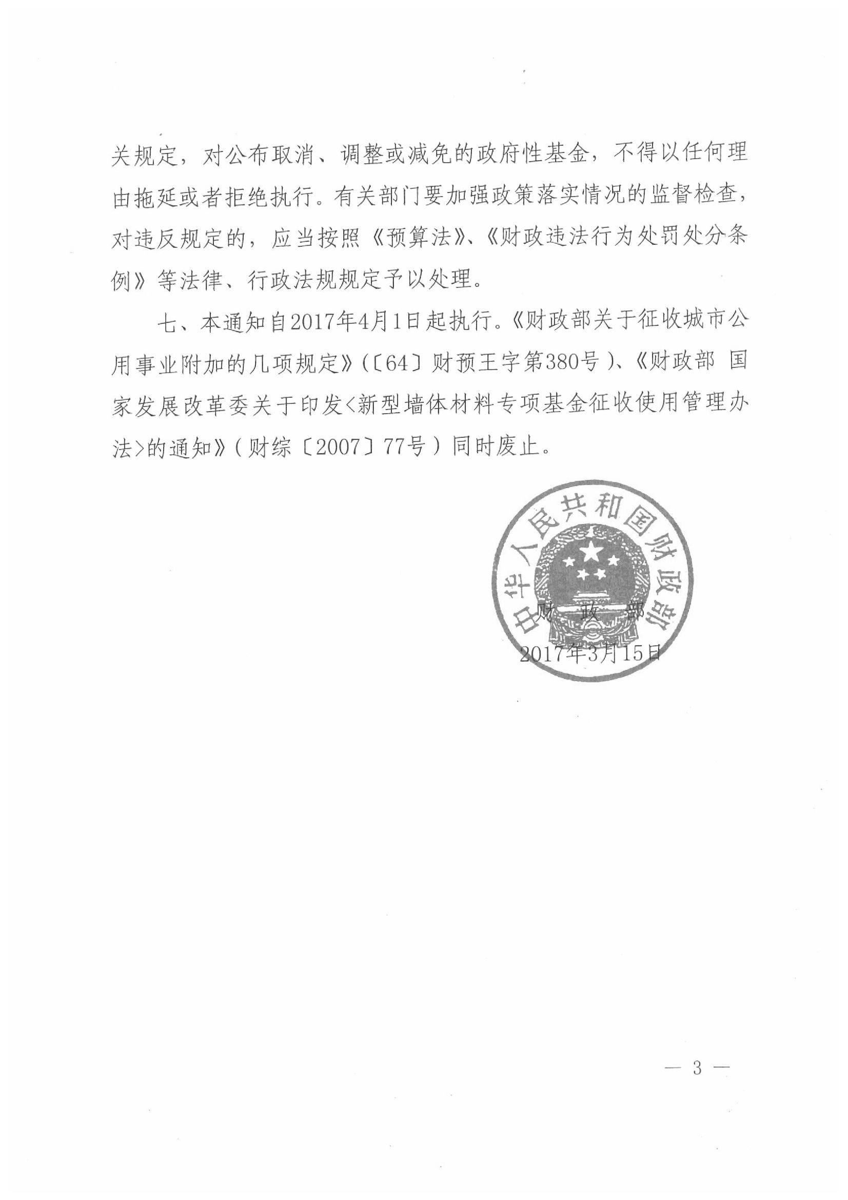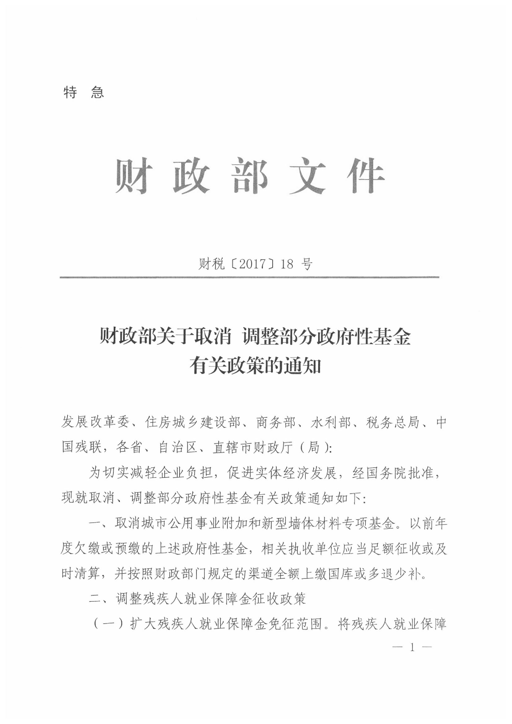 财政部关于取消 调整部门政府性基金有关政策的通知