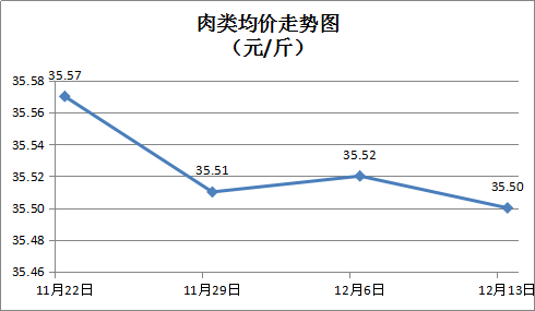 肉类商品价格窄幅盘整。本周所监的8种肉类商品均价为35.50元/斤,周环比下降0.06%。其中:精瘦肉、排骨、有皮上肉、牛肉、带骨羊肉零售均价分别为每斤20.76元、31.09元、16.04元、54.72元、45.60元,环比分别下降0.24%、上涨0.65%、下降0.62%、上涨0.04%、上涨0.04%。