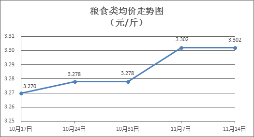 粮食类商品价格平稳。本周所监测的6种粮食商品价格均持平,综合零售均价为3.302元/斤。其中:晚籼米、丝苗米、标准粉零售均价分别为每斤3.34元、3.52元、3.12元,环比均持平。