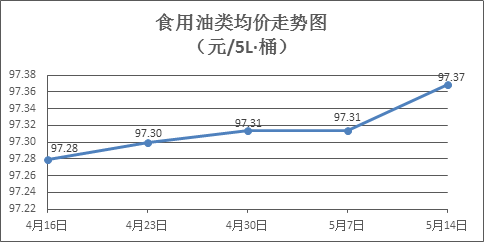 食用油类商品价格微幅调整。上周所监测的9种食用油(5L装)商品价格波动情况为3涨4跌2平,综合零售均价为97.37元/桶,环比上涨0.06%。其中:鲁花花生油、金龙鱼调和油零售均价分别为每桶157.41元、71.56元,环比分别上涨0.06%、下降0.11%。