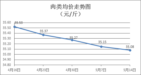 肉类商品价格普遍下降。上周所监测的8种肉类商品价格波动情况为1涨7跌,综合零售均价为35.08元/斤,环比下降0.20%。其中:排骨、精瘦肉、有皮上肉、牛肉、带骨羊肉零售均价分别为每斤29.12元、19.11元、14.35元、54.60元、46.19元,环比分别下降0.31%、下降0.36%、下降0.97%、下降0.04%、下降0.30%。