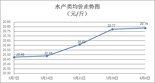水产类商品价格微幅波动。上周所监测的10种水产商品价格波动情况为5涨4跌1平,综合均价为20.79元/斤,环比上涨0. 06%。其中:草鱼、鲢鱼、鳙鱼、罗非鱼、基围虾零售均价分别为每斤11.04元、9.70元、10.07元、8.44元、39.37元,环比分别下降0.27%、上涨0.31%、上涨0.90%、下降0.35%、上涨0.13%。