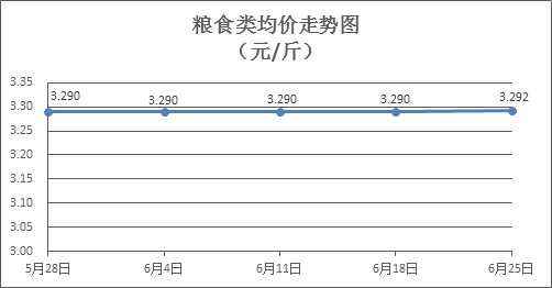 粮食类商品价格基本平稳。上周所监测的6种粮食商品价格环比1涨5平,综合零售均价为3.292元/斤,环比上涨0.05%。其中:丝苗米、油粘米、标准粉零售均价分别为每斤3.46元、3.42元、3.15元,环比分别持平、持平、上涨0.32%。