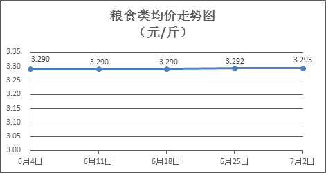 粮食类商品价格基本平稳。上周所监测的6种粮食商品价格环比1涨5平,综合零售均价为3.293元/斤,环比上涨0.05%。其中:丝苗米、油粘米、标准粉零售均价分别为每斤3.46元、3.42元、3.16元,环比分别持平、持平、上涨0.32%。