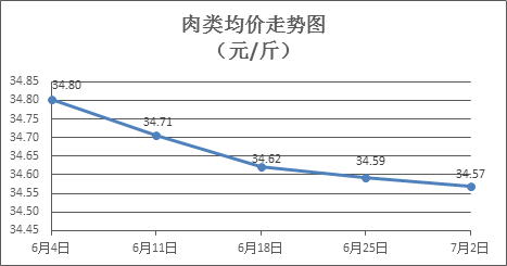 据本市21家农贸市场监测数据显示,上周(6月26日至7月2日,下同)市场上各类“菜篮子”商品供应充足,所监测的7大类“菜篮子”商品价格3涨4跌。其中:粮食类商品价格基本平稳,食用油类、猪肉类、禽蛋类、水果类商品价格总体略降,牛羊类、蔬菜类商品价格有所上涨,水产类商品价格微幅盘整。近期高温天气持续,预计近期部分禽蛋类商品价格有所回调。