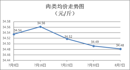 据本市21家农贸市场监测数据显示,上周(7月31日至8月6日,下同)市场上各类“菜篮子”商品供应充足,所监测的7大类“菜篮子”商品价格1涨6跌。其中:粮食类商品价格基本平稳,食用油类、水果类、水产类商品价格总体略降,肉禽蛋类、蔬菜类价格升降互现。受饲料价格上涨影响,预计近期部分禽蛋类商品价格跟涨,其他商品价格小幅波动。