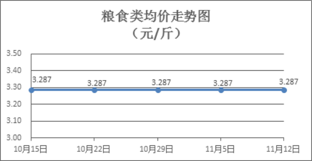 粮食类商品价格保持稳定。上周所监测的6种粮食类商品价格环比均持平,综合零售均价为3.287元/斤。其中:晚籼米、油粘米、标准粉零售均价分别为每斤3.24元、3.42元、3.15元,环比均持平。
