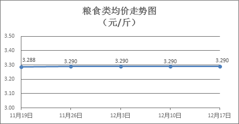 粮食类商品价格保持稳定。上周所监测的6种粮食类商品价格均持平,综合零售均价为3.290元/斤。其中:晚籼米、油粘米、标准粉零售均价分别为每斤3.24元、3.44元、3.15元,环比均持平。