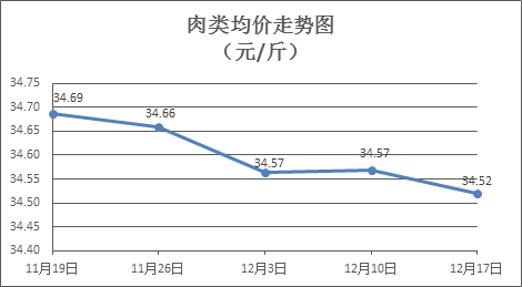 肉类商品价格微幅下降。上周所监测的8种肉类商品价格波动情况为7跌1平,综合零售均价为34.52元/斤,环比下降0.14%。其中:排骨、精瘦肉、有皮上肉、牛肉、带骨羊肉零售均价分别为每斤29.00元、18.49元、14.37元、54.45元、43.19元,环比分别下降0.45%、下降0.54%、下降0.28%、下降0.09%、下降0.14%。
