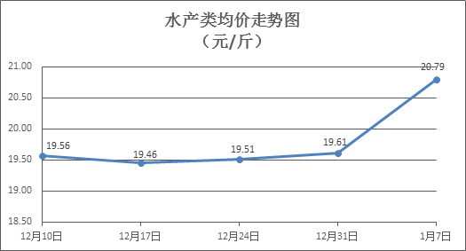 水产类商品价格有所上升。上周所监测的10种水产商品价格波动情况为6涨4跌,综合均价为20.79元/斤,环比上涨6.01%。其中:草鱼、鲫鱼、罗非鱼、基围虾零售均价分别为每斤11.07元、13.79元、8.66元、33.93元,环比分别上涨0.82%、下降2.13%、上涨1.64%、上涨4.11%。