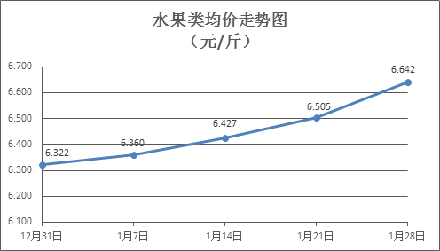 水果类商品价格涨多跌少。上周所监测的6种水果商品价格波动情况为3涨2跌1平,综合零售均价为6.642元/斤,环比上涨2.10%。其中橙子、葡萄、梨零售均价分别为每斤5.15元、15.20元、6.17元,环比分别下降0.77%、上涨5.92%、持平。