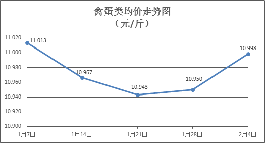 家禽类商品价格小幅上涨。上周所监测的6种禽蛋类商品价格波动情况为4涨2跌,综合零售均价为10.998元/斤,环比上涨0.44%。其中:白条鸡、白条鸭零售均价分别为每斤20.35元、15.19元,环比分别上涨1.24%、上涨0.40%;白壳鸡蛋、鸭蛋零售均价分别为每斤6.75元、7.69元,环比分别下降0.30%、上涨0.26%。