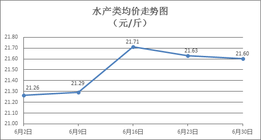 水产类商品价格微幅波动。所监测的10种水产商品价格波动情况为4涨5跌1平,综合均价为每斤21.60元,环比下降0.13%。其中:草鱼、鲫鱼、鲈鱼、罗非鱼、基围虾零售均价分别为每斤11.16元、14.32元、21.39元、8.84元、30.39元,环比分别上涨0.63%、上涨0.07%、上涨1.37%、下降0.11%、下降0.72%。