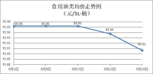 食用油类商品价格微幅盘降。所监测的9种食用油(5L装)商品价格波动情况为2涨3跌4平,综合零售均价为每桶95.91元,环比下降0.03%。其中:鲁花花生油、金龙鱼调和油零售均价分别为每桶154.46元、71.36元,环比分别上涨0.04%、下降0.28%。