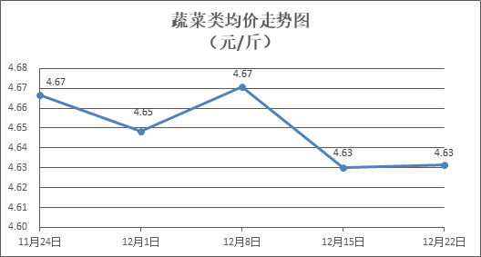 据本市21家农贸市场监测数据显示,上周(12月16日至12月22日)市场上各类“菜篮子”商品供应充足,所监测的7大类“菜篮子”商品价格总体表现为1涨5跌1平。其中:粮油类商品价格基本平稳,肉禽蛋类、蔬菜类商品价格窄幅盘整,水果类、水产类商品价格总体略降。腌腊行情降温,猪肉类、水产类价格有所回落。节日效应叠加降温,预计部分肉禽蔬菜价格稳中有涨。