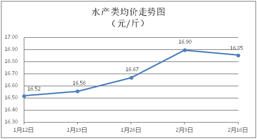 据本市21家农贸市场监测数据显示,上周(2月10日至2月16日)市场上各类“菜篮子”商品供应充足,所监测的7大类“菜篮子”商品价格环比总体表现为2涨4跌1平。其中:粮油类商品价格基本平稳,肉禽类、蔬果类、水产类商品价格总体略降,蛋类价格稳中略涨。