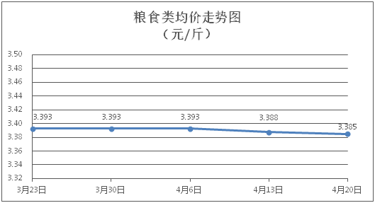 粮食类商品价格稳中微降。所监测的4种粮食类商品价格波动情况为1涨2跌1平,综合零售均价为每斤3.385元,环比下降0.07%。其中:丝苗米、面粉零售均价分别为每斤3.50元、3.40元,环比分别下降0.28%、持平。