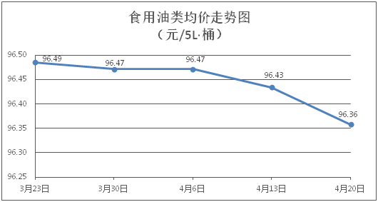 食用油类商品价格总体略降。所监测的9种食用油(5L装)商品价格波动情况为3涨4跌2平,综合零售均价为每桶96.36元,环比下降0.08%。其中:鲁花花生油、大豆油零售均价为每桶155.92元、61.69元,环比分别上涨0.02%、下降0.61%。