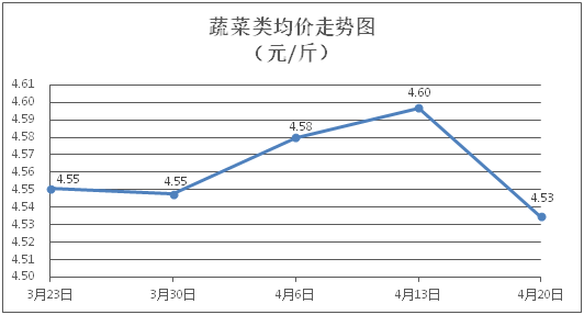 据本市21家农贸市场监测数据显示,上周(4月14日至4月20日)市场上各类“菜篮子”商品供应充足,所监测的7大类“菜篮子”商品价格环比总体表现为3涨4跌。其中:粮油类商品价格总体略降,肉类、水果类、水产类商品价格窄幅盘整,禽蛋类、蔬菜类商品价格以降为主。