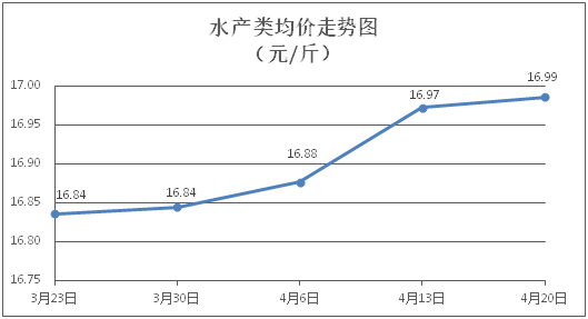 水产类商品价格弱势波动。所监测的9种水产商品价格波动情况为3涨4跌2平,综合均价为每斤16.99元,环比上涨0.08%。其中:黄花鱼、草鱼、鲫鱼、罗非鱼、基围虾零售均价分别为每斤22.90元、11.08元、14.19元、9.06元、30.52元,环比分别持平、上涨0.18%、下降0.35%、下降0.44%、上涨0.76%。