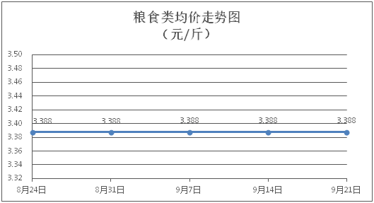 粮食类商品价格保持稳定。所监测的4种粮食类商品价格均持平,综合零售均价为每斤3.388元。其中:丝苗米、面粉零售均价分别为每斤3.51元、3.39元,环比均持平。