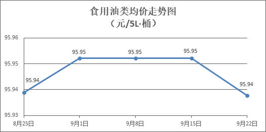 食用油类商品价格基本平稳。所监测的9种食用油(5L装)商品价格波动情况为3跌6平,综合零售均价为每桶95.94元,环比下降0.01%。其中:鲁花花生油、金龙鱼调和油零售均价分别为每桶154.40元、71.56元,环比持平、下降0.01%。