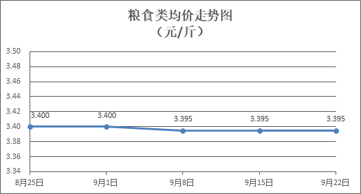 粮食类商品价格保持稳定。所监测的4种粮食类商品价格均持平,零售均价为每斤3.395元。其中:丝苗米、富强粉零售均价分别为每斤3.58元、3.37元,环比均持平。