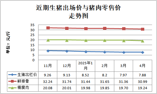 我市生猪、仔猪出场价出栏均价分别为每公斤15.76元、35.80元,环比分别下降1.07%、上涨1.85%,同比分别下降3.43%、下降26.64%;鲜排骨、精瘦肉、牛肉、带骨羊肉零售均价分别为每斤30.99元、19.24元、46.13元、42.08元,环比分别下降1.18%、下降2.34%、下降0.69%、上涨2.78%,同比分别上涨6.20%、上涨5.89%、下降10.74%、下降3.64%;饲料类价格,玉米、豆粕、麦皮购进均价分别为每公斤2.53元、3.55元、2.16元,环比分别上涨0.80%、下降2.20%、下降1.82%,同比分别下降1.94%、上涨2.90%、上涨20%。