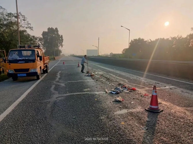△鹤山公路事务中心在节日期间坚持全覆盖、不间断巡查,及时清理路面垃圾,确保道路安全畅通。