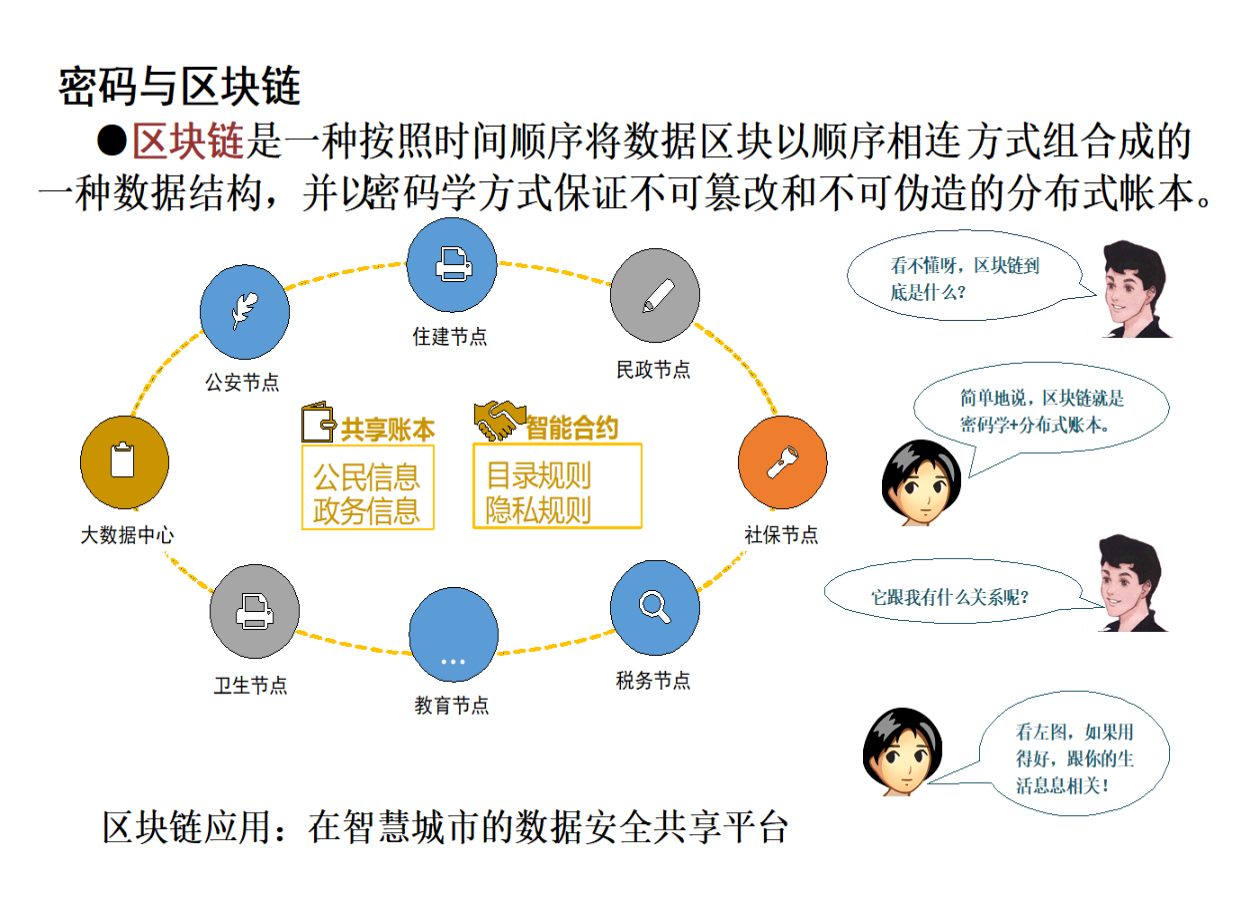 “进不来”、“拿不走”、“看不懂”、“改不了”、“走不脱”,是密码在保障信息安全中发挥的身份认证、访问控制、机密性、完整性、不可抵赖性等作用的通俗表述。网络连到哪,数据跑到哪,安全需求在哪,密码保障到哪。