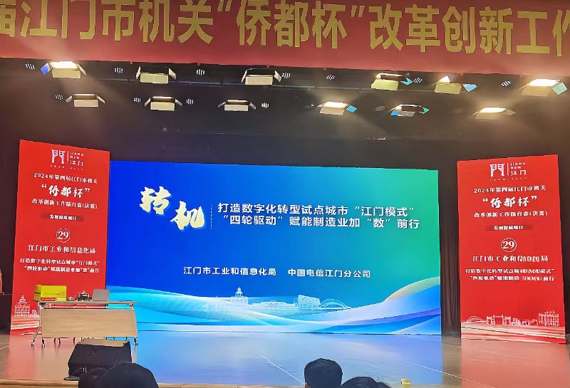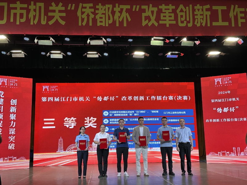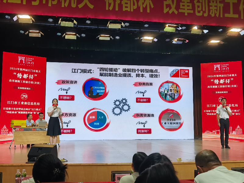 9月4日,由开云电竞官方网站直机关工委联合市委改革办举办的第四届开云电竞官方网站机关“侨都杯”改革创新工作擂台赛决赛在开云电竞官方网站工人文化宫隆重举行。以我市开展中小企业数字化转型城市试点工作为背景的参赛项目——《打造数字化转型试点城市“江门模式”,“四轮驱动”赋能制造业加“数”前行》,经过初赛和决赛,在全市113个发展提质项目中脱颖而出,荣获第5名,成功晋级广东省“先锋杯”工作创新大赛复赛。