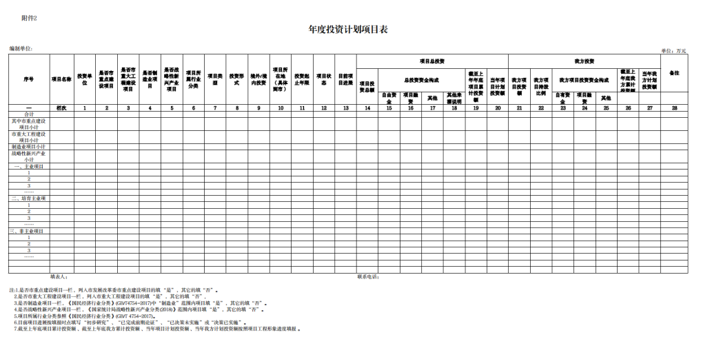 (二)年度投资计划项目表(见附件2);