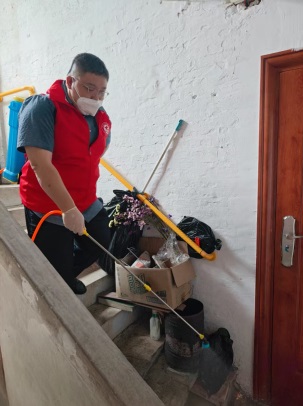 二、开展成蚊消杀,对楼道、巷道、下水道、楼顶等区域进行全覆盖作业
