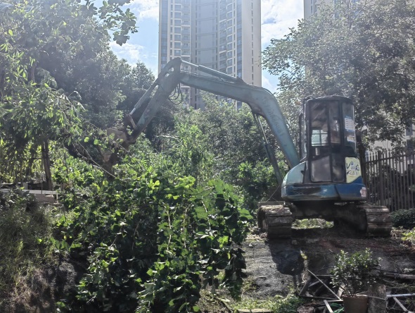 中铁六局集团有限公司国道G240项目经理部紧密协作,调配专业挖土机等工程设备,对目标区域内大面积丛生的杂草、灌木进行了高效、彻底的机械化清理,有效清除蚊媒孳生地。