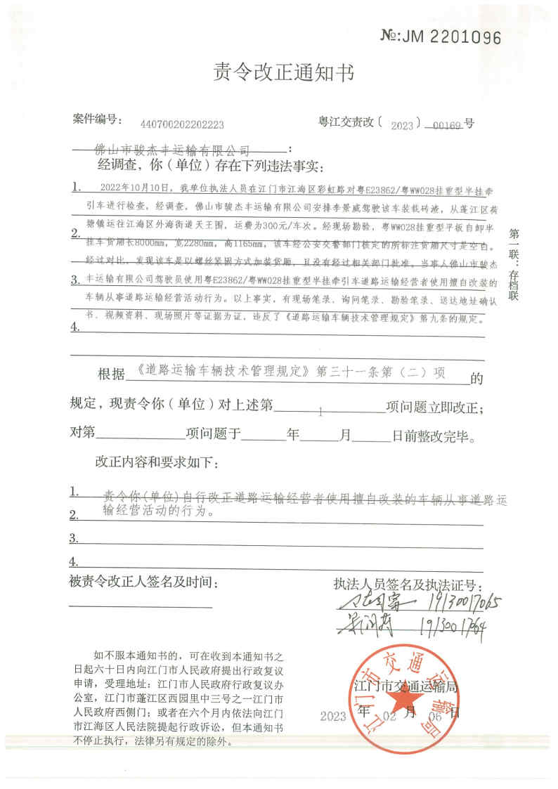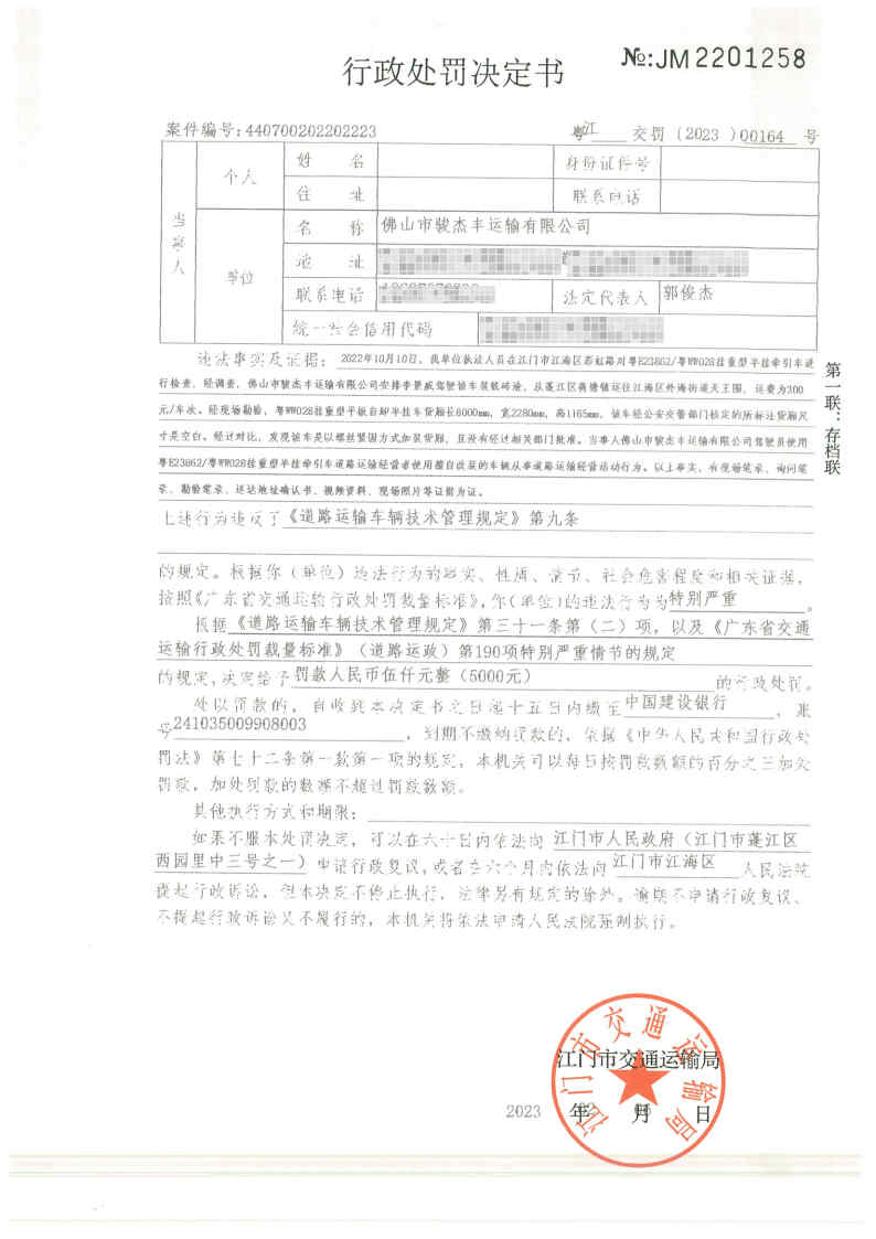 佛山市骏杰丰运输有限公司: