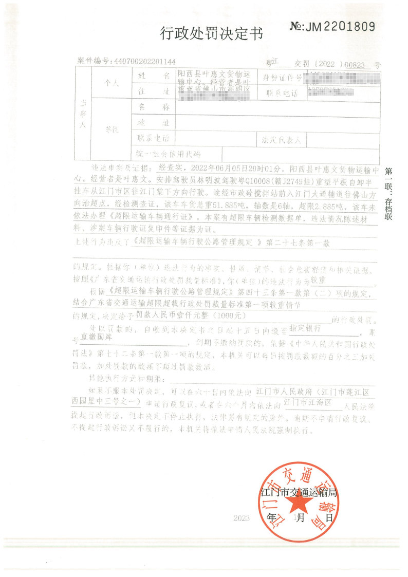 阳西县叶惠文货物运输中心(经营者是叶惠文):