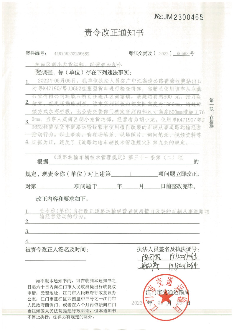 你(单位)因违反交通运输行政管理法规,本机关已作出行政处罚决定和责令改正通知书(具体内容详见附件)。依照《中华人民共和国民事诉讼法》第九十二条的规定,因受送达人采用其他方式无法送达,现向你(单位)公告送达《行政处罚决定书》和《责令改正通知书》。自公告之日起,经过30日即视为送达。