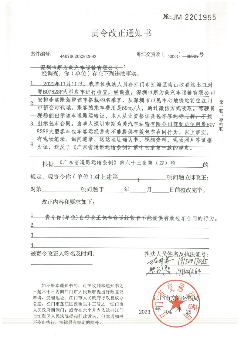你(单位)因违反交通运输行政管理法规,本机关已作出行政处罚决定和责令改正通知书(具体内容详见附件)。依照《中华人民共和国民事诉讼法》第九十二条的规定,因受送达人采用其他方式无法送达,现向你(单位)公告送达《行政处罚决定书》和《责令改正通知书》。自公告之日起,经过30日即视为送达。