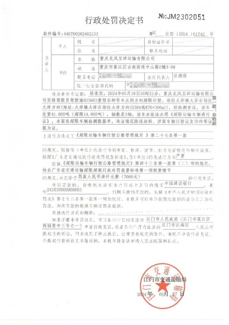 你(单位)因违反交通运输行政管理法规,本机关已作出行政处罚决定和责令改正通知书(具体内容详见附件)。依照《中华人民共和国民事诉讼法》第九十五条的规定,因受送达人采用其他方式无法送达,现向你(单位)公告送达《行政处罚决定书》和《责令改正通知书》。自公告之日起,经过30日即视为送达。