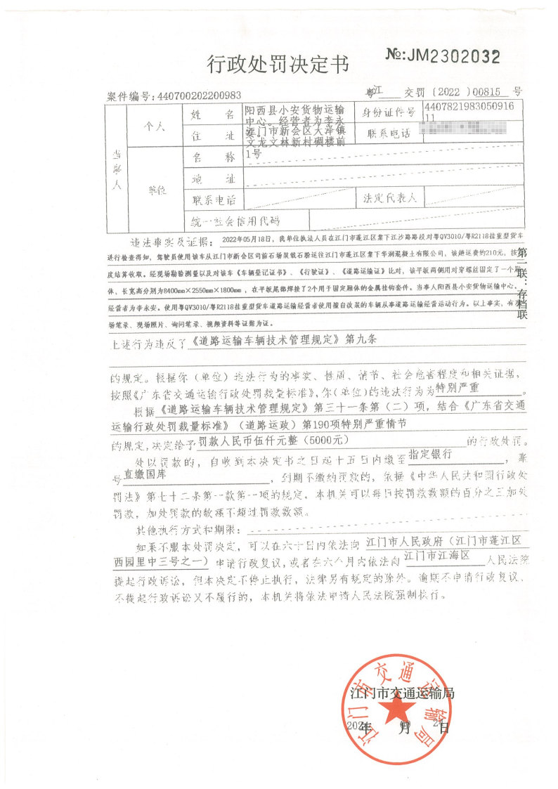 联系地址:开云电竞官方网站潮连大道18号开云电竞官方网站交通运输局违章处理窗口,电话:0750-3887771。