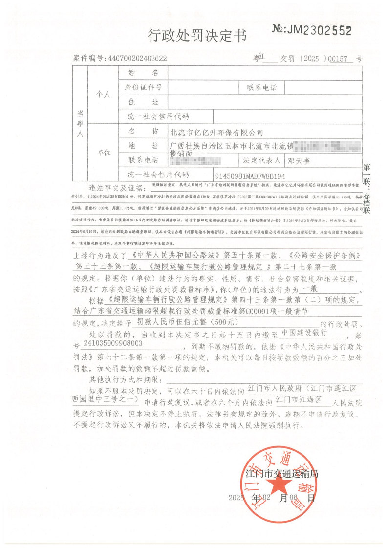 北流市亿亿升环保有限公司: